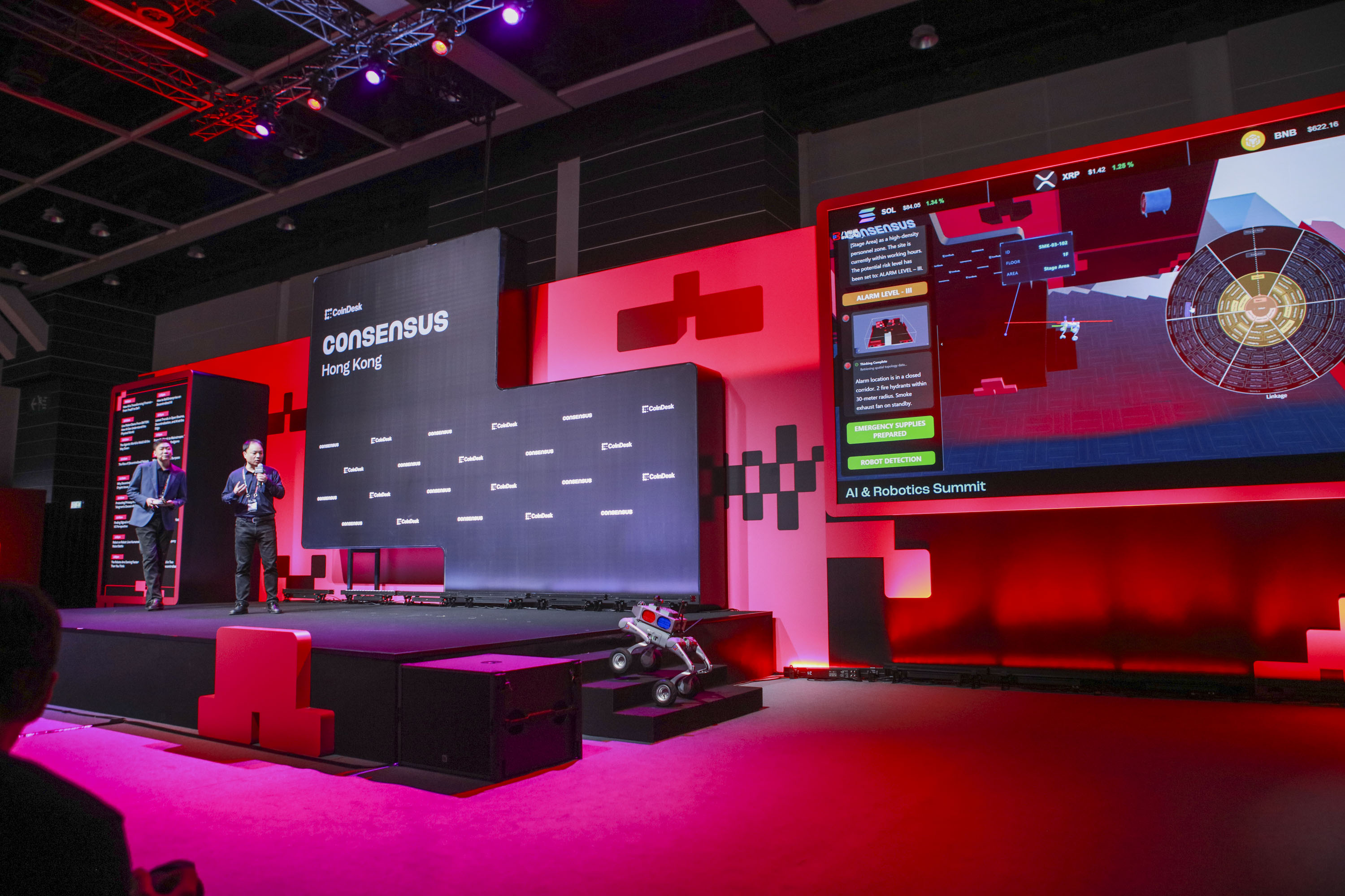 在全球數(shù)字資產(chǎn)從“概念探索”邁向“建制融合”的關(guān)鍵節(jié)點(diǎn),2026年2月10日至12日,備受矚目的Consensus Hong Kong 2026在香港盛大舉行。本屆大會(huì)以“Web3與區(qū)塊鏈加速應(yīng)用新時(shí)代”為主題,首度增設(shè)“人工智能與機(jī)器人峰會(huì)”,系統(tǒng)探討AI、機(jī)器人技術(shù)與區(qū)塊鏈的融合路徑與生態(tài)構(gòu)建。作為空間智能領(lǐng)域領(lǐng)軍企業(yè),八維通科技有限公司團(tuán)隊(duì)?wèi)?yīng)邀參會(huì),攜公司前沿的具身智能解決方案精彩亮相。通過(guò)實(shí)景機(jī)器人演示與深度演講,八維通向全球展示了“物理世界可計(jì)算、可交互、可信任”的智能化未來(lái)。